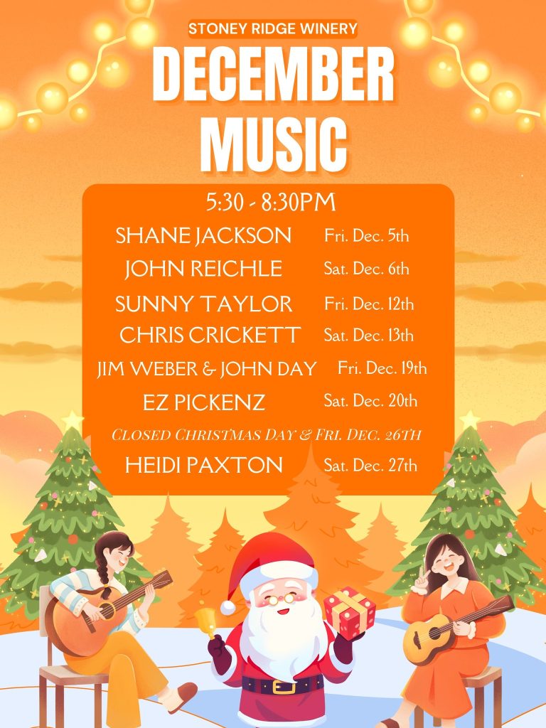 Enjoy live music all month long! Stoney Ridge offers a robust selection of wine, craft beer and cocktails, along with a food menu.
