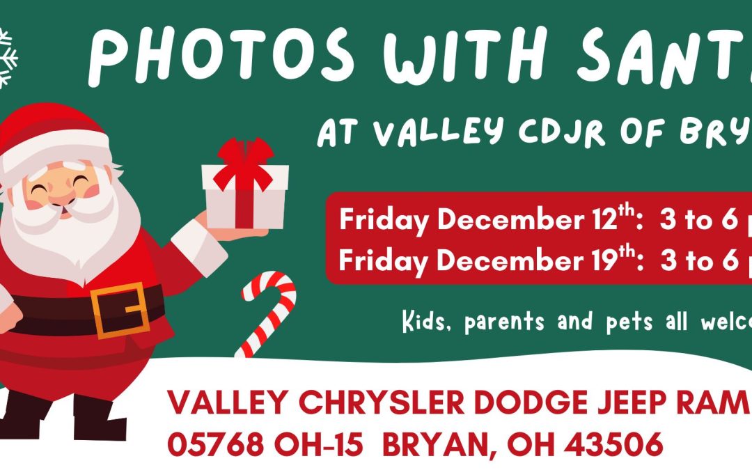 Stop by Valley Chrysler Jeep Doge Ram for photos with Santa. Kids, pets and families are welcome!