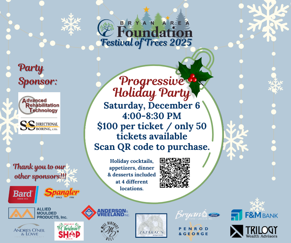 Enjoy holiday cocktails, appetizers, dinner and desserts at four different downtown Bryan locations. This event also includes a special “last look” at the Bryan Area Foundation’s Festival of Trees. Tickets are required. Learn more.