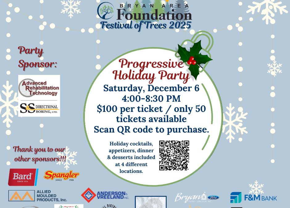 Enjoy holiday cocktails, appetizers, dinner and desserts at four different downtown Bryan locations. This event also includes a special “last look” at the Bryan Area Foundation’s Festival of Trees. Tickets are required. Learn more.